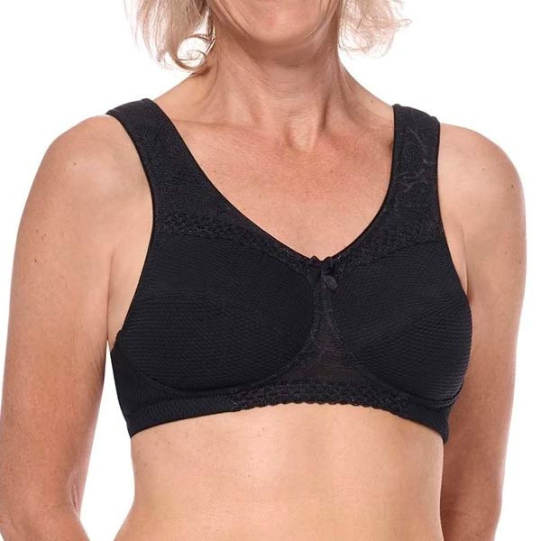 - Brede schouderbandjes. Fijn draagcomfort, vooral rond de schouders. Het belemmert de lymfedrainage niet en draagt zonder knelling.