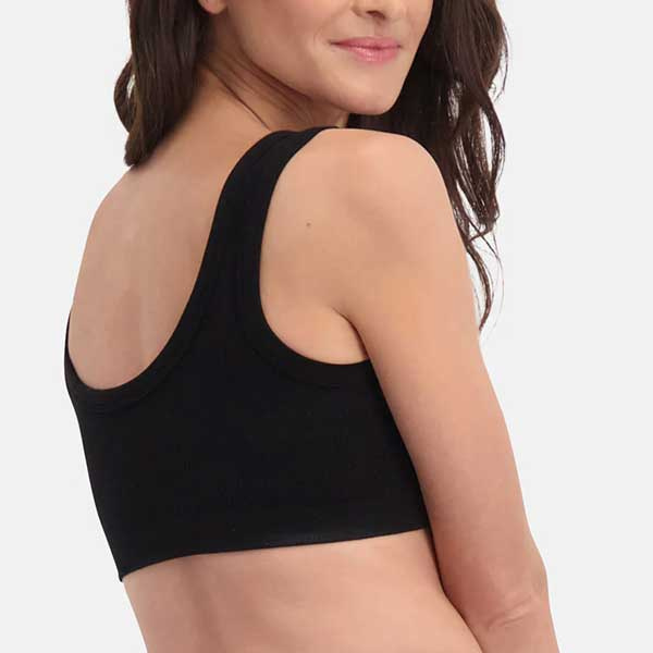 De Bamboo Basics Ruby is een comfortabele bh top met een subtiele rib textuur. Deze rib bra is gemaakt voor dagelijks dragen: de ribstructuur geeft een natuurlijke stretch en een licht ondersteunend gevoel, zonder dat het strak aanvoelt. De ribstructuur is niet alleen een detail voor de look, het helpt de stof mee te bewegen met je lichaam. Daardoor voelt deze bamboo bh top vaak stabiel aan, terwijl je toch dat “tweede huid”-gevoel houdt. De Ruby heeft brede schouderbandjes die niet verstelbaar zijn. Dat geeft rust op de schouders en maakt de fit simpel: aantrekken en klaar.