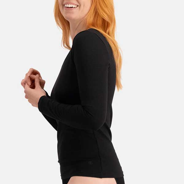 Daardoor voelt de Liv niet alleen zacht aan, maar blijft het ook een praktisch basic t-shirt dames lange mouw dat je veel kunt dragen zonder dat het stug of vormloos wordt.. Bamboo Basics staat bekend om comfortabele bamboo shirts met een zacht oppervlak. De Liv voelt zijdezacht aan en heeft daarnaast eigenschappen als ademend en hypoallergeen. Dat maakt dit bamboe t shirt dames prettig voor lange dagen en fijn als basislaag direct op de huid.