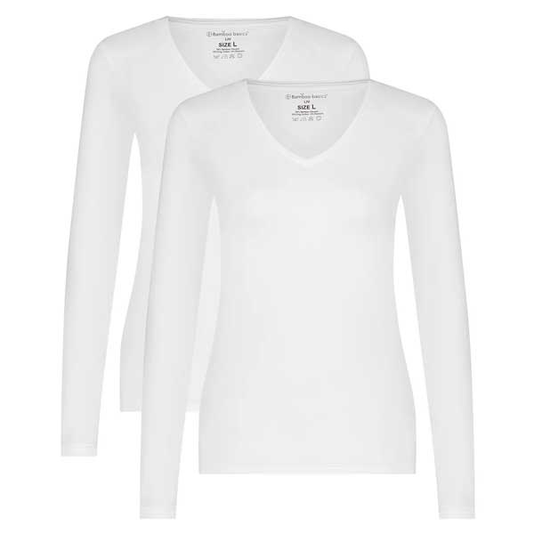 Bamboe longsleeve dames V hals Bamboo Basics Liv, 2-pack basics van bamboe, katoen en elastaan. Zacht shirt met lange mouw voor onder of boven je outfit. Bekijk de gehele collectie Bamboo basics.