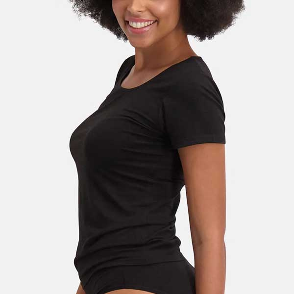 Als je zoekt op t shirt korte mouw dames, dan wil je meestal een basic die je vaak pakt: comfortabel, niet stug en fijn in laagjes. De Kate sluit daarbij aan door het zijdezachte gevoel, het ademend dragen en het is hypoallergeen (wat door veel mensen met een gevoelige huid als prettig wordt ervaren).
