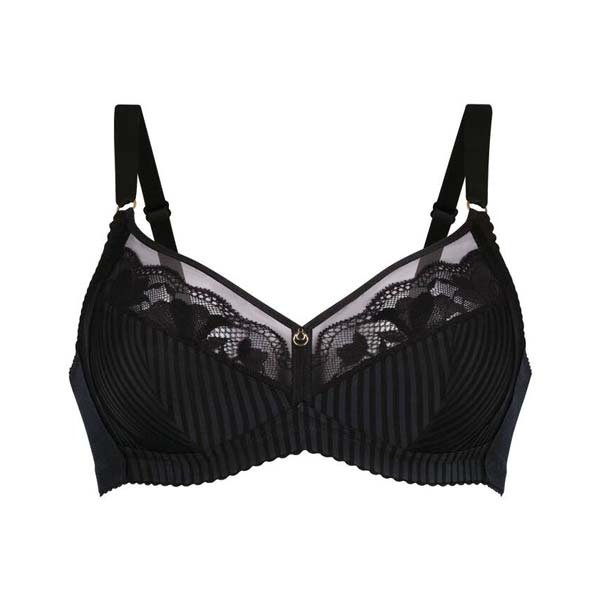 Comfortabele en stijlvolle Beugelloze BH 5266 Rosa Faia Sita met all over strepen in de ondercup en elastisch gebloemd kant in de bovencup. De 3-delige cup zorgt voor een perfecte pasvorm, juiste ondersteuning en een natuurlijke vorming van je borst. Ben je op zoek naar zowel elegantie als draaggemak, dan is de Sita bh zonder beugel 5266 een uitstekende keuze.
