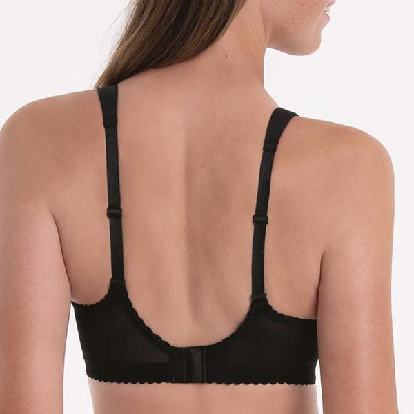 - Bij grotere maten krijgt de BH een hogere zij- en achterkant en bredere schouderbandjes, wat zorgt voor meer stevigheid en draagcomfort.