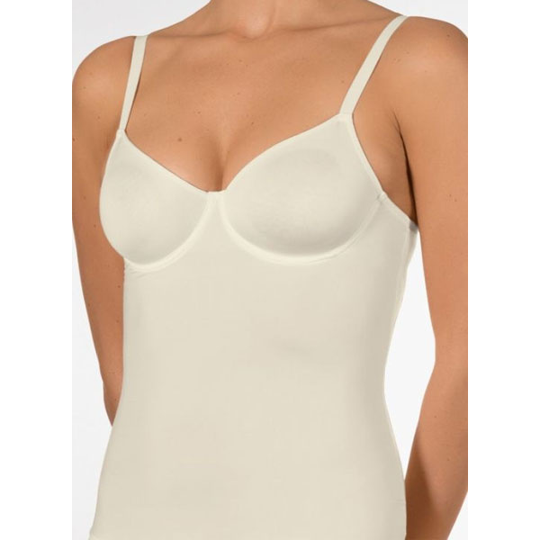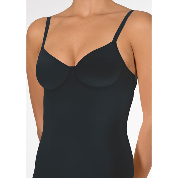 BH-hemd uit de Secret Shape-serie van Nina von C. Lichte shaping door dubbel gemolde cups met beugel (zonder vulling), zachte microvezel, verstelbare bandjes, supervlakke zoom en stevige tule-inzet in het rugpand, nauwsluitend en comfortabel onder kleding. Klik hier voor het gehele aanbod Nina von C / bh hemd.