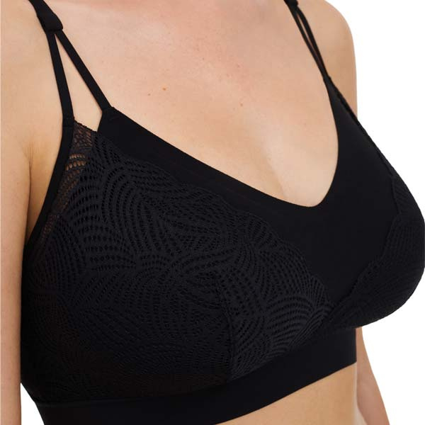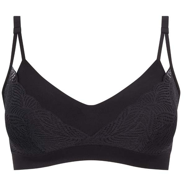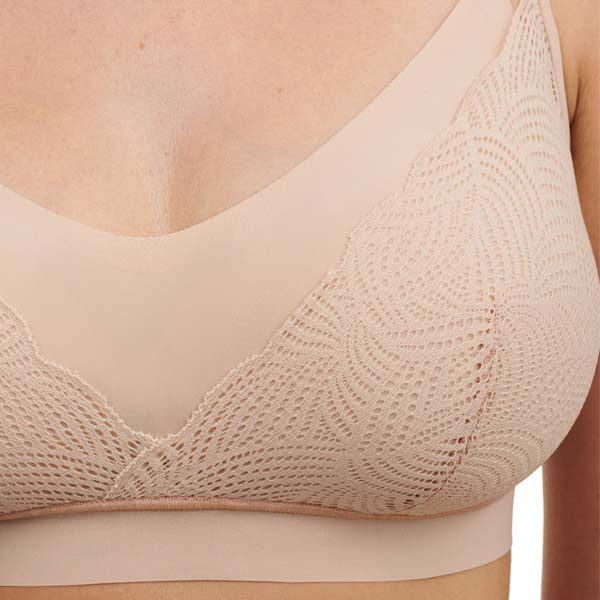 - Naadloze bralette zonder beugel met uitneembare voorgevormde cups.