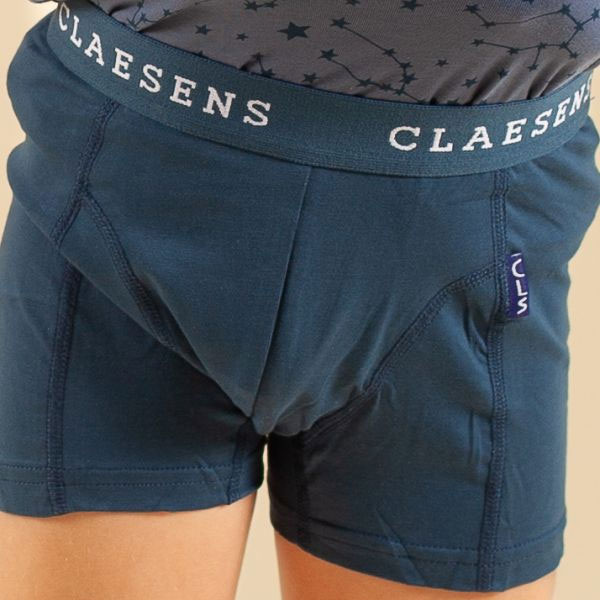 De set bestaat uit vijf boxershorts in navy tinten: twee met een all-over sterrenprint, twee met een speelse planetenprint en één effen donkerblauwe boxer. De elastische tailleband met Claesens logo zorgt voor een comfortabele pasvorm en blijft goed zitten zonder te knellen. Dankzij de stevige afwerking en het zachte materiaal zijn deze boxers een fijne en praktische keuze voor jongens.