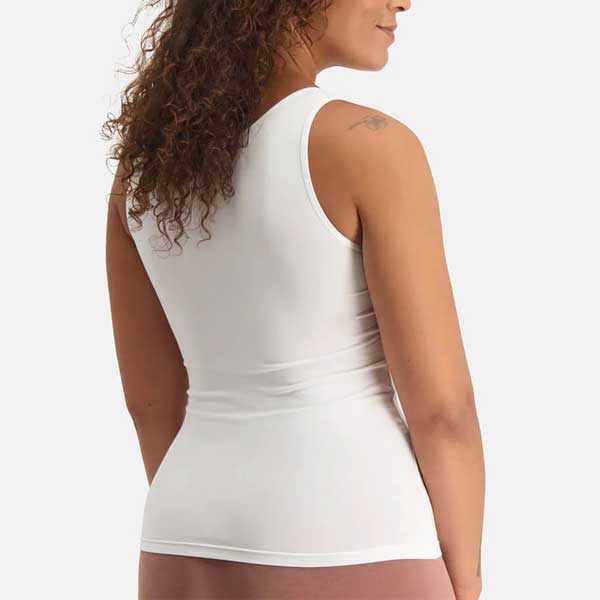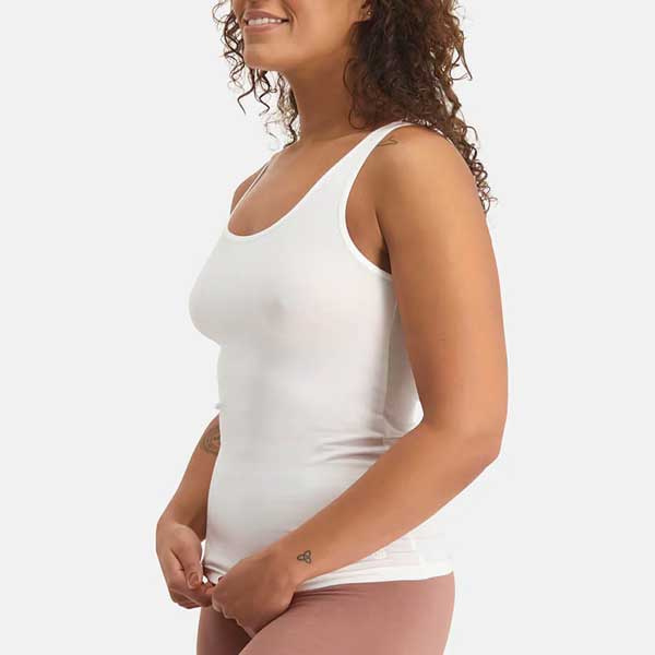 De Bamboo Basics Alice is een comfortabel dameshemd met brede schouderbandjes en een ronde hals. Door de aangesloten pasvorm valt het hemd glad onder kleding.