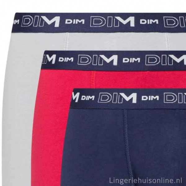 DIM heren boxers 3-pak D6596 coton stretch - uit de ondergoed serie CotonStretch. Drie prachtige boxershorts, gemaakt van een uitstekende kwaliteit katoen. 3-pack boxers in de kleuren navy/raspberry en licht grijs. Direct leverbaar! Uit de DIM coton stretch heren ondergoed serie. Gehele aanbod DIM boxershorts / boxershorts.