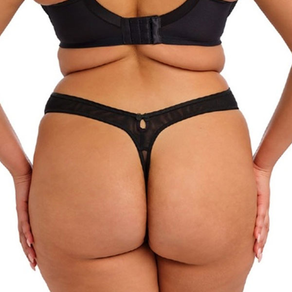 Prachtige Elomi Teagan grote maten string met dubbele mesh, lurex borduursel en satijnlook taille. Mooie strikdetails voor en achter. Gehele aanbod Elomi lingerie / BH.