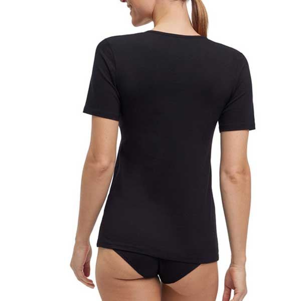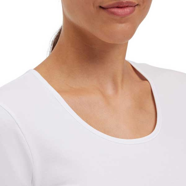 De Falke 69100 dames shirts worden geleverd als 2-pack en zijn bedoeld als basislaag voor dagelijks gebruik. De ronde hals is licht verdiept, waardoor het shirt minder zichtbaar is onder een blouse of top. Hierdoor wordt dit model vaak gedragen als dames onderhemd, maar ook als eenvoudig dames t-shirt korte mouw.