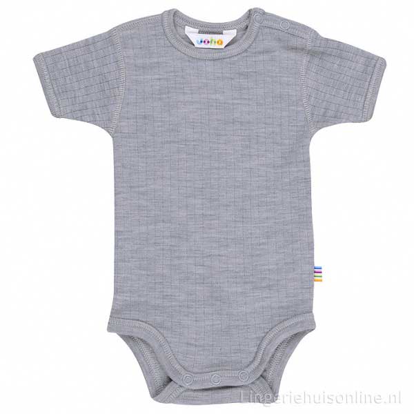 Joha baby rompertje met korte mouw 62886 - uit de Wool basic serie met een geweven ribstructuur waardoor het rompertje mooi aansluit.