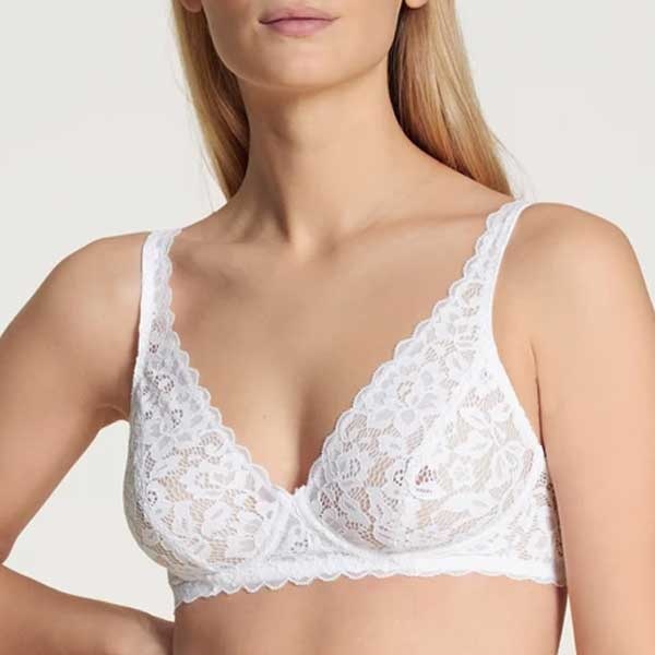 Kanten BH zonder beugel 03556 Calida Natural Comfort Lace - een comfortabele bh zonder beugel uit de serie Natural Comfort Lace. De BH is geheel van kant en geeft een lichte ondersteuning aan uw borsten. Bekijk de gehele collectie van Calida ondergoed.