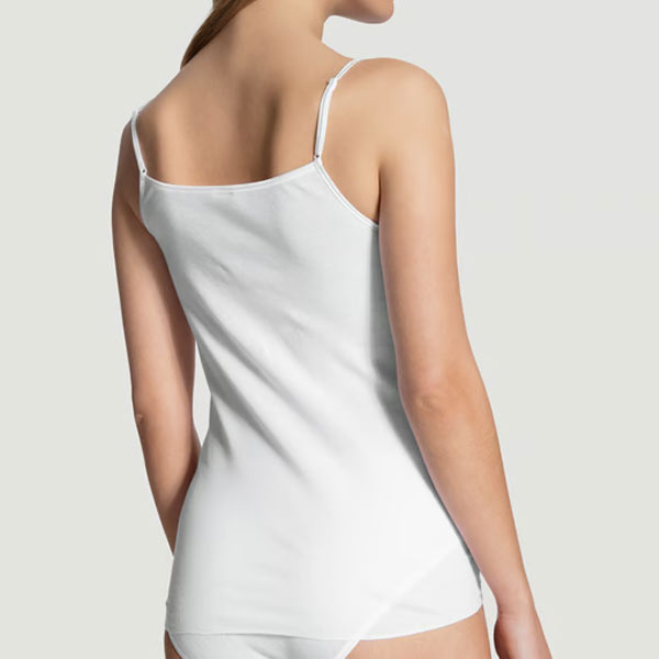 Het 100% Katoenen hemd met spaghettibandjes 11451 Calida biedt luxe comfort dankzij de naadloze afwerking, verstelbare bandjes en de kanten halslijn. Geschikt voor dagelijks gebruik. Gehele aanbod Ondergoed / Calida ondergoed.