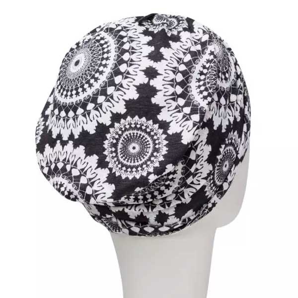 Christine headwearLicht zomer chemo mutsje van linnen 1417 - luxe en luchtig zomers design mutsje. Linnen aan de buitenkant met een luxe print, binnenzijde van bamboe.