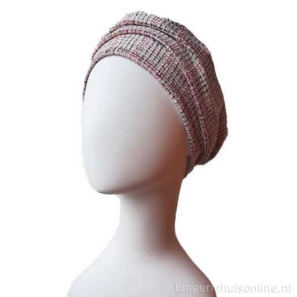 Lookhatme Maya chemomutsje baret roze glans MA1698 - in het mutsje zit een subtiel glanzend zilver draadje geweven. Comfortabele Maya-mutsje, ontworpen met een binnenvoering van TENCEL™ stof, waarbij de naden zoveel mogelijk zijn verborgen om een uiterst zacht en glad gevoel op de huid te bieden. Direct leverbaar. Gehele aanbod hoofdmutsjes / chemo mutsjes.