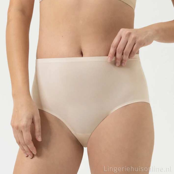 Comfortabele hoge dames slip van Mey met geplakte vlakke randen. Perfect als naadloos ondergoed onder strakke kleding. Gehele aanbod van Mey ondergoed / naadloos ondergoed.