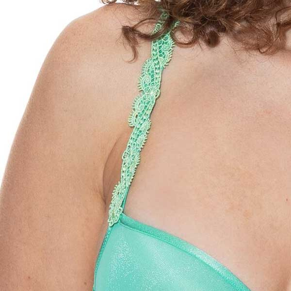 Luchtige half cup spacer bh van Mey in zomers Seafoam. Versierde bandjes, mooie details en perfect onder tops met brede halslijnen. Laatste maten, op = op! Mooi met de bijpassende slip Mey 79635.
