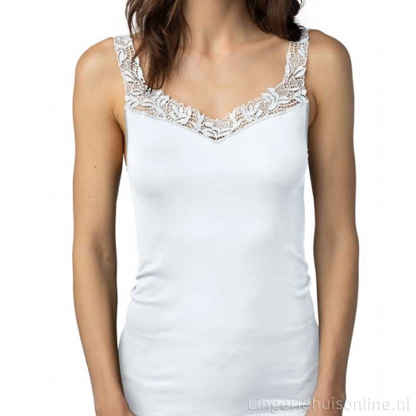 mey ondergoed dames hemd viscose 55372 - Mey dames hemd / top met een bewerkt bandje en mooi kant langs het decolleté. Prachtig als boven top of onder een lage top of blouse.