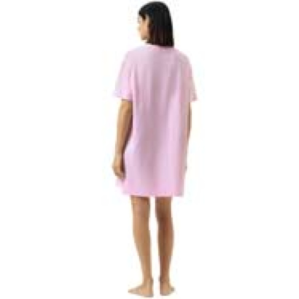 Het nachthemd heeft korte mouwen, een recht model en een opvallende print op de voorkant met graphic belettering. Daardoor is dit model net wat uitgesprokener dan een effen slaapshirt, maar nog steeds rustig genoeg voor dames die comfortabele nachtkleding zoeken met een verzorgde uitstraling. Door de rechte belijning valt het model niet strak om het lichaam.
