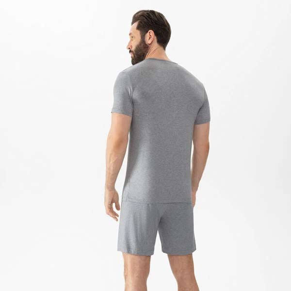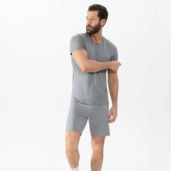 De Mey shortama heren uit de serie Easy Night (artikel 2240023) is een korte pyjamaset in Light Grey Melange. Door het hoge aandeel modal (95%) voelt de stof lekker glad en soepel aan en beweegt deze prettig mee.