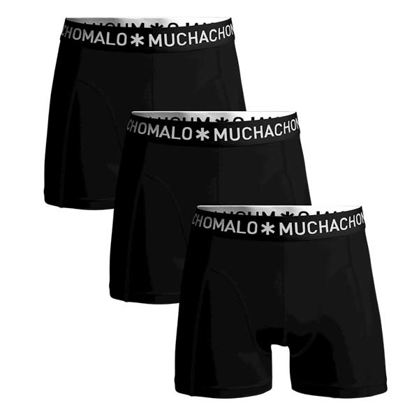 Muchachomalo 3-pack boxershorts zwart 1010SOLID185 – drie comfortabele katoenen boxershorts voor heren in effen zwart, met een stevige kwaliteit en fijne pasvorm. Direct leverbaar uit voorraad bij Lingeriehuisonline.