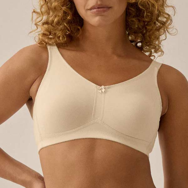 De Naturana prothese bh 5801 is een zachte, naadloze katoenen prothese BH zonder beugel met aan beide zijden prothesehoesjes. Deze prothese bh is niet voorgevormd (geen vulling) en heeft dubbel gelaagde cups voor een prettige, stabiele pasvorm. Dankzij het hoge katoenaandeel (87% katoen) voelt de bh rustig aan op de huid.