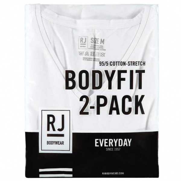 Dit 2-pack van de RJ Bodywear Everyday T-shirt Den Bosch 37-051 is een strakker body fit (d.m.v. elastan) aansluitend heren T-shirt met V-hals, afgezet met een boord. Gehele collectie ondergoedRJ Bodywear.