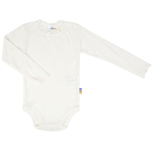 De romper lange mouw 66490 Joha is een comfortabele baby romper met lange mouwen, gemaakt van zachte wol. De wol zorgt voor een natuurlijke warmte en een goed ademend vermogen, zodat je baby het niet te warm of te koud krijgt. Ideaal als basislaag. Klik hier voor het gehele aanbod Joha baby romper / Joha.
