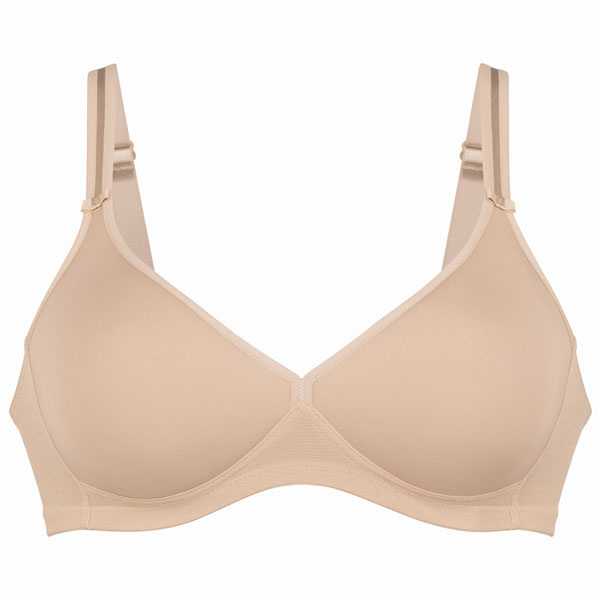 Deze voorgevormde bh zonder beugel is lekker basic - zonder kant of extra versieringen en volledig gericht op functionaliteit. De bh is verkrijgbaar in een ruime matenrange van 70 t/m 95 omvang en cup B t/m G. Dat zegt veel over de mate van ondersteuning: zelfs grotere borsten krijgen hiermee een mooie, stabiele steun.