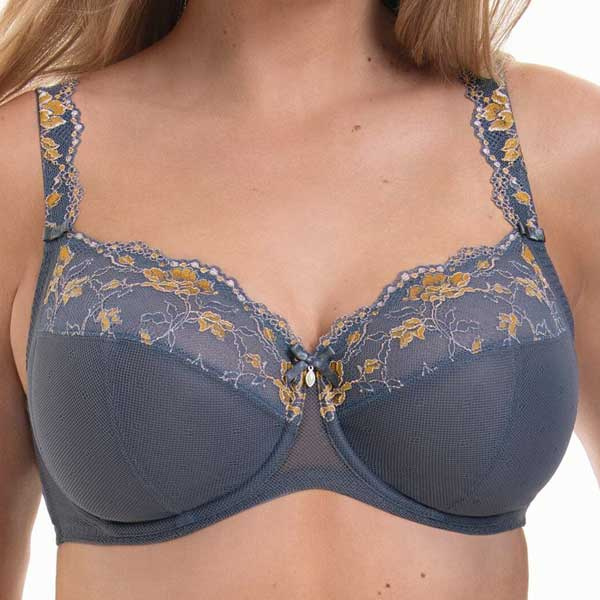 Rosa Faia Colette 5249 bh grote cup maat met kant - extra steunende en vormende beha in een betoverende uitvoering. T/m cupmaat J. Driekleurig hoogwaardig Japans kant en versierde bh-bandjes. Verleidelijk, semi-transparant. Bijpassende Rosa Faia Colette lingerie. Gehele aanbod Rosa Faia.