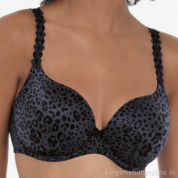 Deze Rosa Faia JOY voorgevormde beugel bh 5261 is een prachtige voorgevormde beugelbeha met zachte, gladde bedrukte leopard cups. De BH is erg fijn om te dragen en biedt de perfecte ondersteuning. Verstelbare schouderbandjes afgewerkt met bloemenkant en haak-oog sluiting op de achterzijde. Gehele aanbod van Rosa Faia lingerie.