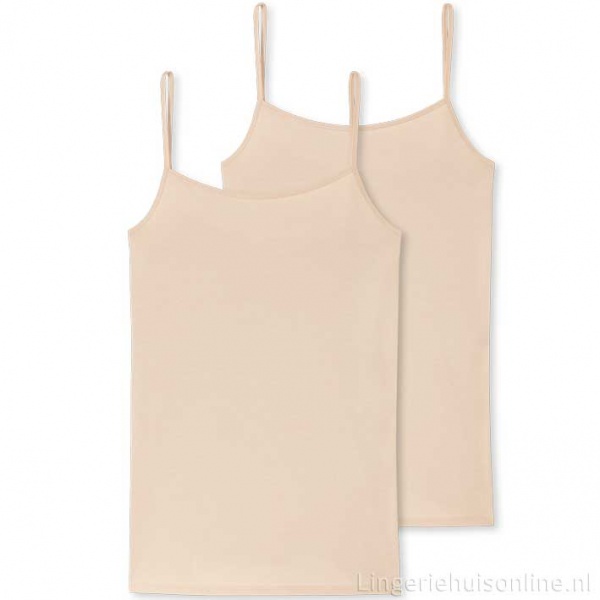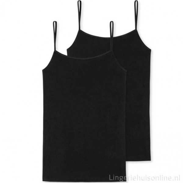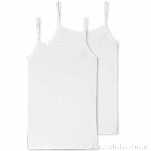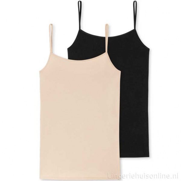 Schiesser dames hemden biologisch katoen 174388 2-pack - uit de 95/5 ondergoed serie van Schiesser. Spaghettitops, dunne schouderbandjes.