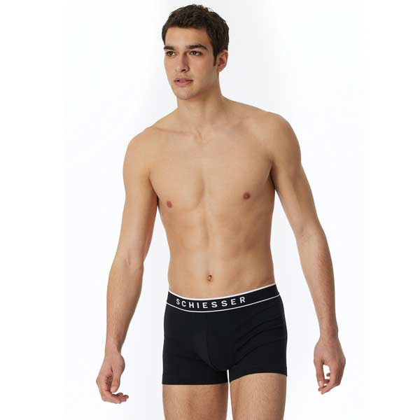 Schiesser 95/5 5-pack zwarte boxershorts. Schiesser multipack in single jersey van 95% biologisch katoen en 5% elastaan. Tijdloos Schiesser heren ondergoed. Gehele aanbod Schiesser / boxershorts.