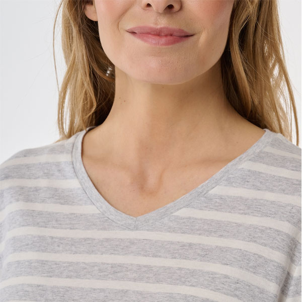 Praktisch detail zijn de twee zijdelingse, doorgestikte zakken die het nachthemd een casual uitstraling geven. Dankzij het ademende katoen voelt de stof soepel en comfortabel aan en blijft het nachthemd ook na vaak wassen mooi in model.