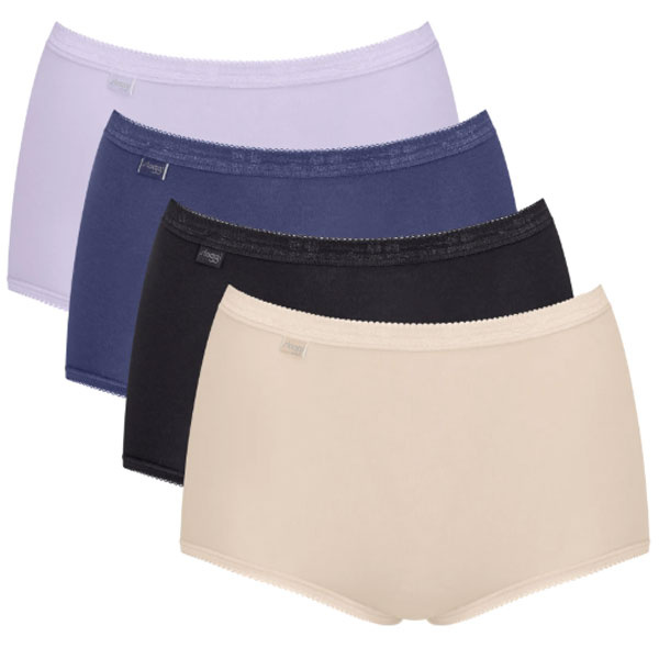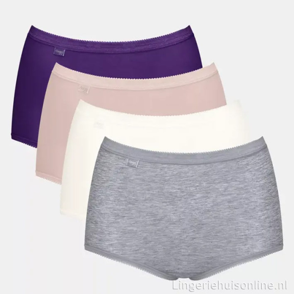 Sloggi basic plus maxi slips 4-pak dames onderbroeken met dubbel katoenen kruisje. In leuke kleur combinaties.