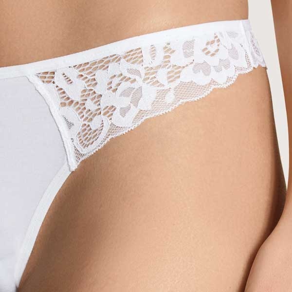 String met kant 20056 Calida - String met kant uit de serie Natural Comfort Lace van het merk Calida. De string voelt zacht aan, heeft vlakke naden en een hoog draagcomfort. Bekijk de gehele collectie Calida ondergoed.