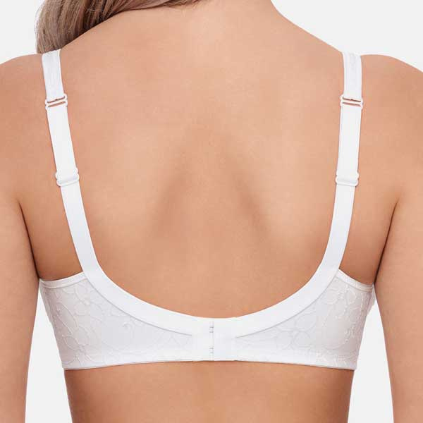 De brede verstelbare schouderbandjes dragen bij aan een stabiele pasvorm en zijn eenvoudig in lengte aan te passen. De haak-oog sluiting op de achterzijde zorgt ervoor dat u de bh goed kunt afstellen. De bloemenprint in de stof geeft het model extra detail, zonder dat de bh druk oogt.