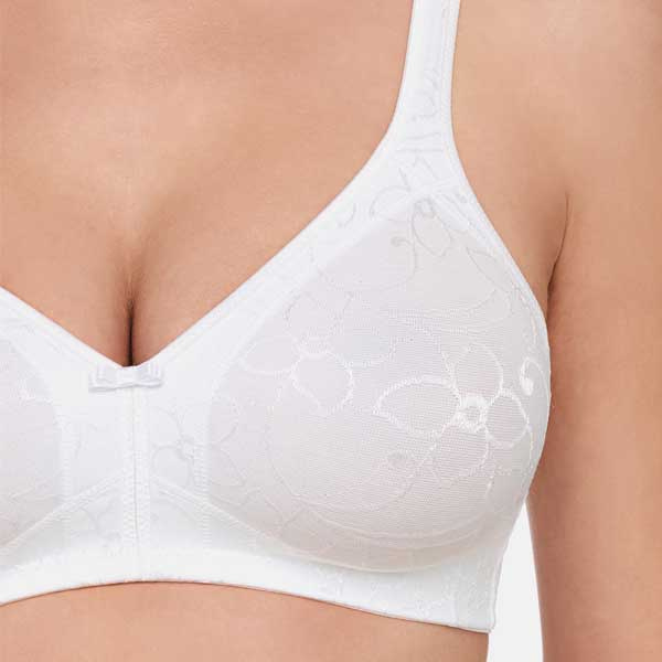 Susa 7507 is een bh zonder beugel met katoenen binnencups, zijversteviging en brede verstelbare schouderbandjes. De gladde cups en de bloemenprint in de stof maken dit model tot een functionele bh met een verzorgde afwerking.