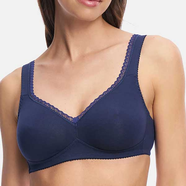 Het hoge aandeel katoen maakt deze katoenen beha huidvriendelijk en prettig draagbaar. Katoen staat bekend om zijn ademende eigenschappen en natuurlijke gevoel op de huid. Door de toevoeging van polyamide en elastaan blijft de stof beter in model en sluit de bh mooier aan. De brede gevoerde schouderbandjes verdelen het gewicht gelijkmatiger over de schouders en kunnen in lengte worden versteld.
