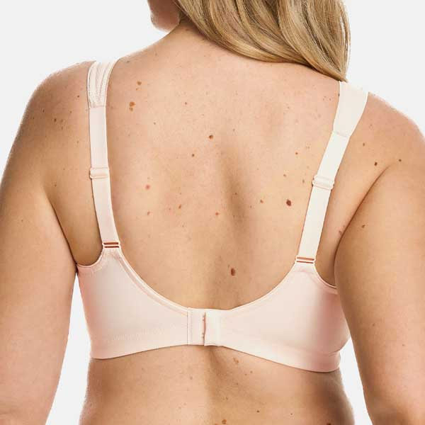 De brede comfortbandjes zijn gevoerd en helpen de druk op de schouders beter te verdelen. Daardoor is deze bh met brede schouderbandjes prettig voor wie smalle bandjes minder fijn vindt. Onder de cups is een soft touch onderband verwerkt, waardoor de bh zachter aanvoelt op de huid.