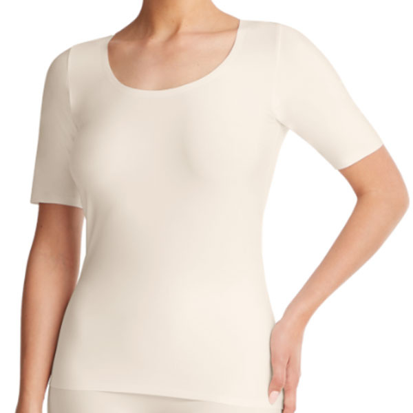 Ten Cate Secrets dames shirt 60466 is een zacht, naadloos T-shirt met korte mouw dat licht aansluit en uw bovenlichaam mooi glad laat ogen onder blouses, truien en jurken. De elastische stof voelt licht aan op de huid en is ideaal als onzichtbare basislaag voor elke dag. Ontdek meer Ten Cate Secrets, Ten Cate ondergoed en ander ondergoed.