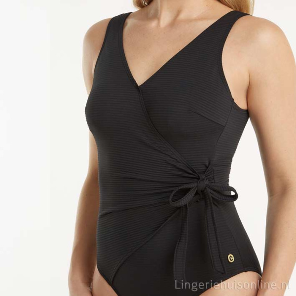 Ten Cate voorgevormd badpak met plooitjes 60339 met korting zonder beugel, met verstelbaar strikdetail en flatterende pasvorm. Gehele aanbod badmode / Ten Cate Swim.