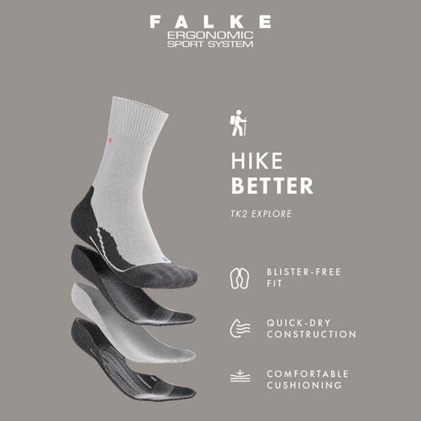 TK2 Wandelsokken Dames Merinowol Falke 16445 met anatomische pasvorm, medium demping en vochtregulatie. Geschikt voor wandelen in alle seizoenen. Gehele aanbod Falke / wandelsokken.