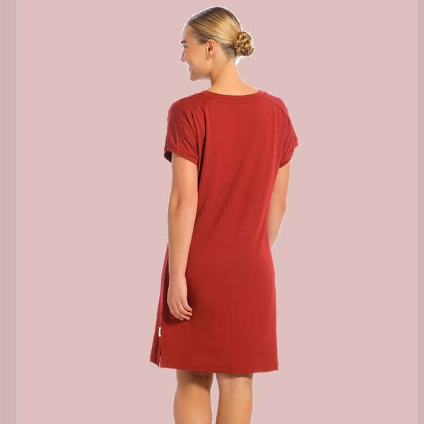 Velvet Red dames nachthemd van viscose met korte mouw en knielengte. Zacht, soepel en ademend, ideaal als nachthemd of relaxjurk. Nu extra voordelig in de sale.