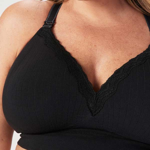 - Voedingsbh zonder beugel met bralette-look; drukt of snijdt niet in gevoelig borstweefsel.