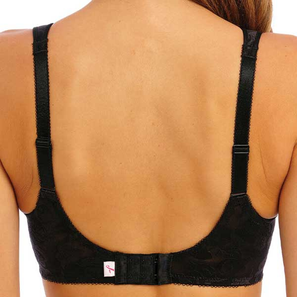 - De bh heeft een uitstekende drukverdeling. Bij de grotere maten zijn het zij- en achterpand extra hoog voor meer steun. Het achterpand is dan voorzien van drie haakjes voor een stevige sluiting.