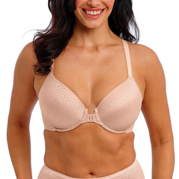 Comfort Wacoal bh met voorsluiting, voorgevormd en met beugel, T-back & gladde afwerking. Stevige ondersteuning, gemakkelijk aan- en uit-trekken. Bekijk het gehele aanbod Wacoal Lingerie.