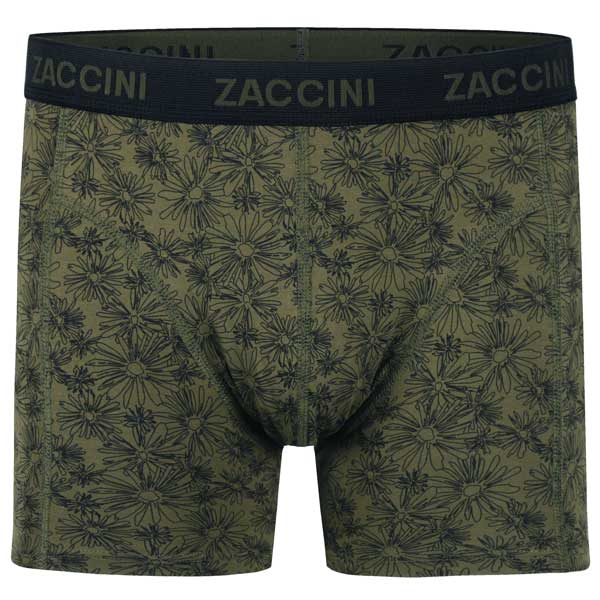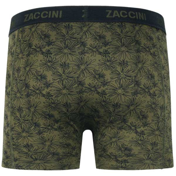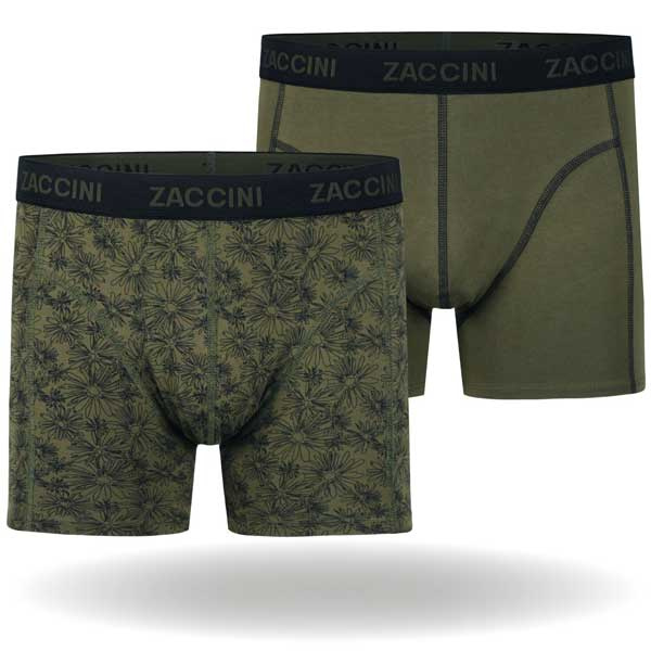 Zaccini underwear boxershorts Urban Blossom M25-276-03 een 2-pack heren boxershorts in de Olive kleur, 1x effen groen (olive) + 1x groene olive met bloemen print in de bekende Zaccini pasvorm. Gehele aanbod Zaccini boxershorts.
